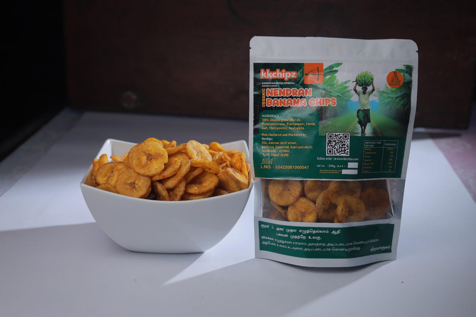 we take pride in delivering the authentic taste of Kanniyakumari Nendran banana chips, crafted with the finest ingredients and perfected through generations. Our chips are made using premium-quality Nendran bananas, fried to crispy perfection in 100 %chekku Groundnut oil to ensure an unmatched taste and quality. We are committed to maintaining high standards of hygiene and freshness, bringing you a snack that is not just delicious but also wholesome.